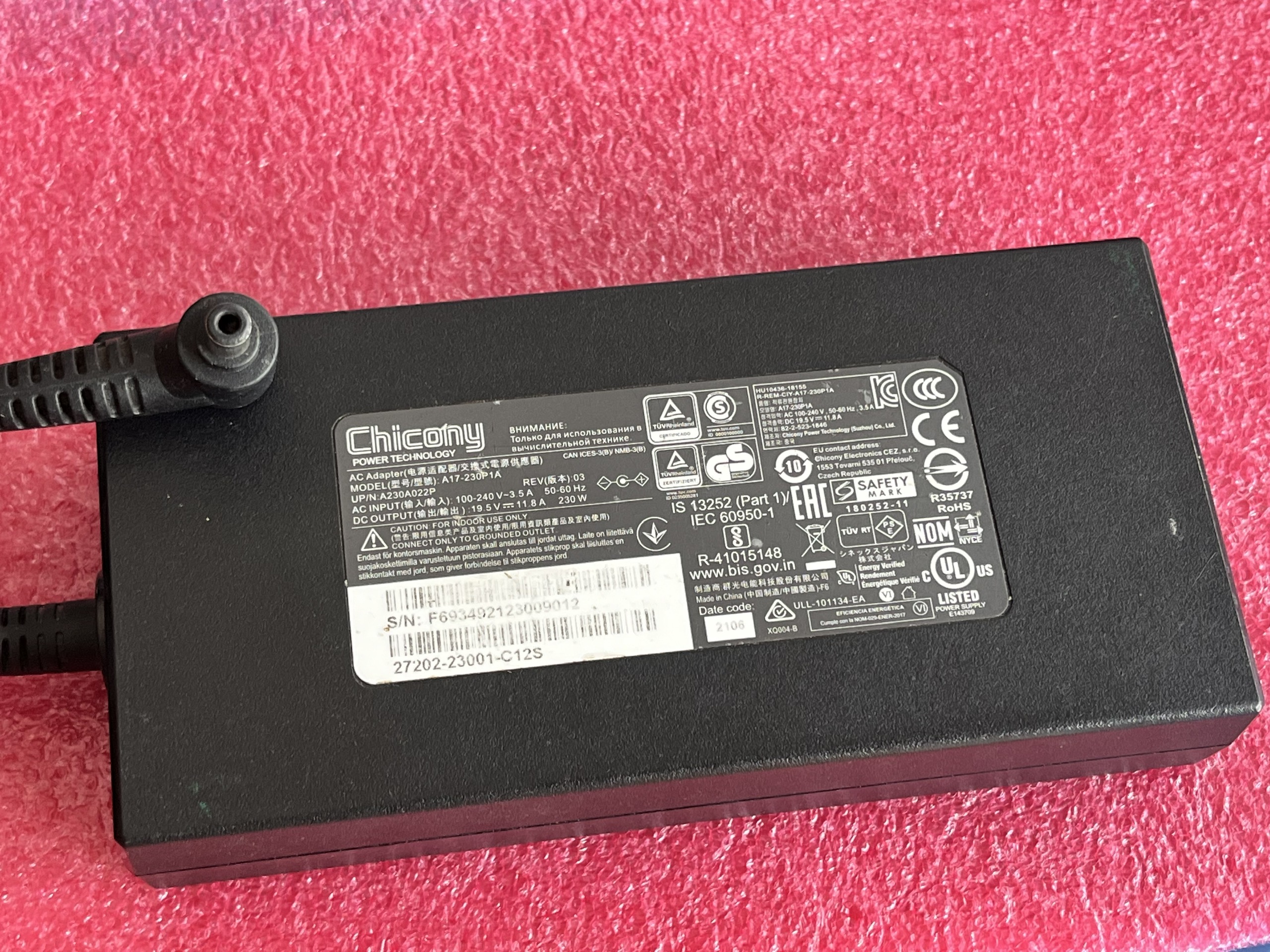 Sạc Gaming acer 230W ( 19.5V 11.8A ) 5.5×1.7mm , ADP-230JB D , hàng zin theo máy , chính hãng